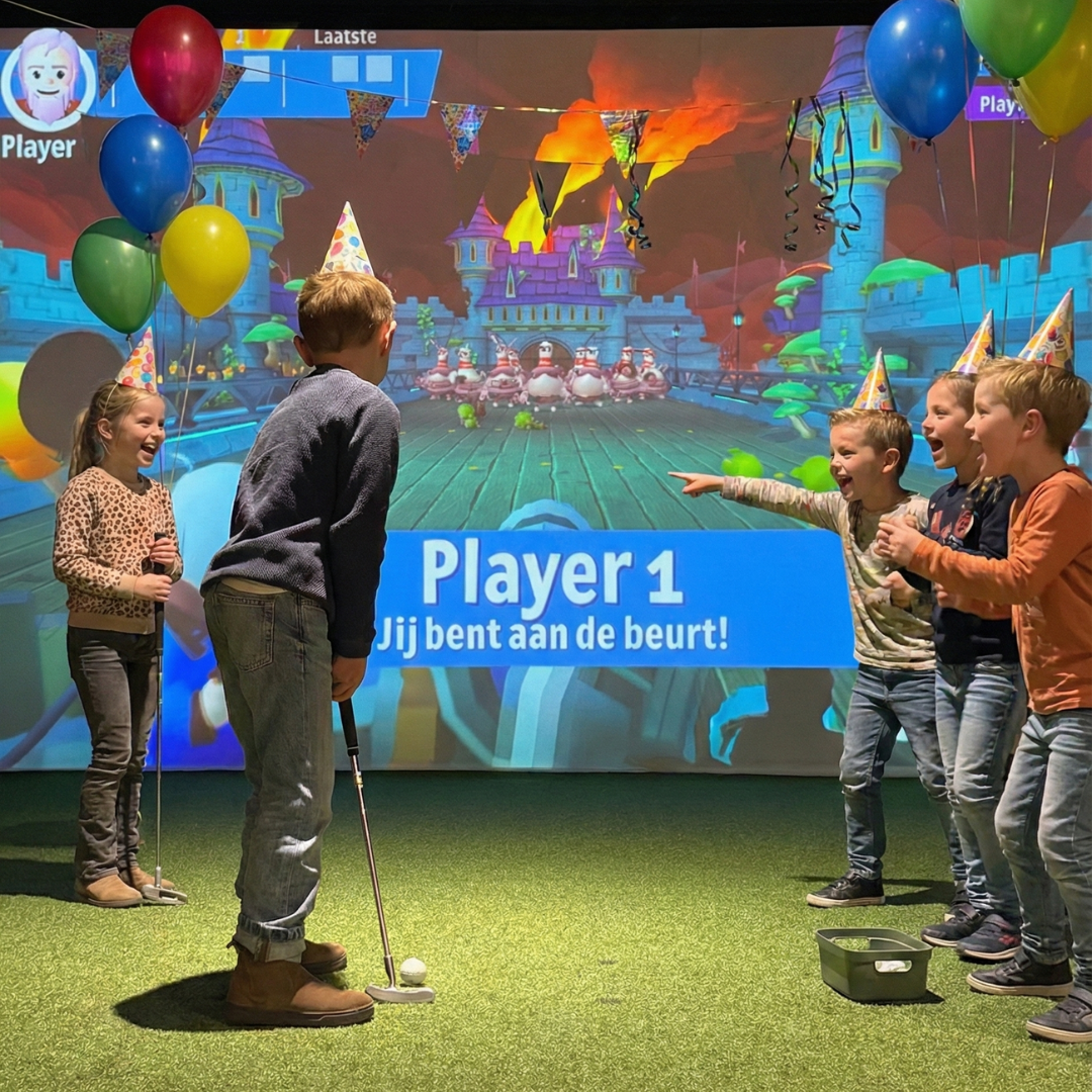 Een kinderfeestje binnen vieren? Bij RUFF zit je altijd goed. Regen of zonneschijn, bij ons gaat het feestje gewoon door. Met indoor minigolf en onze golf simulator bieden we spannende en uitdagende binnen activiteiten voor een kinderfeestje waar kinderen volop van genieten.